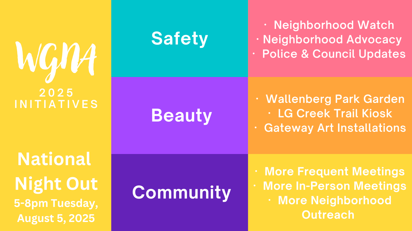 WGNA’s Purpose and Values embrace the principles and spirit of non- partisan, non-political, open, honest, transparent, fair, positive governance in full public view of our members and general public. WGNA represents all members and does not endorse candidates for political office, political parties, or divisive issues. It is the intent of WGNA to remain non-political.